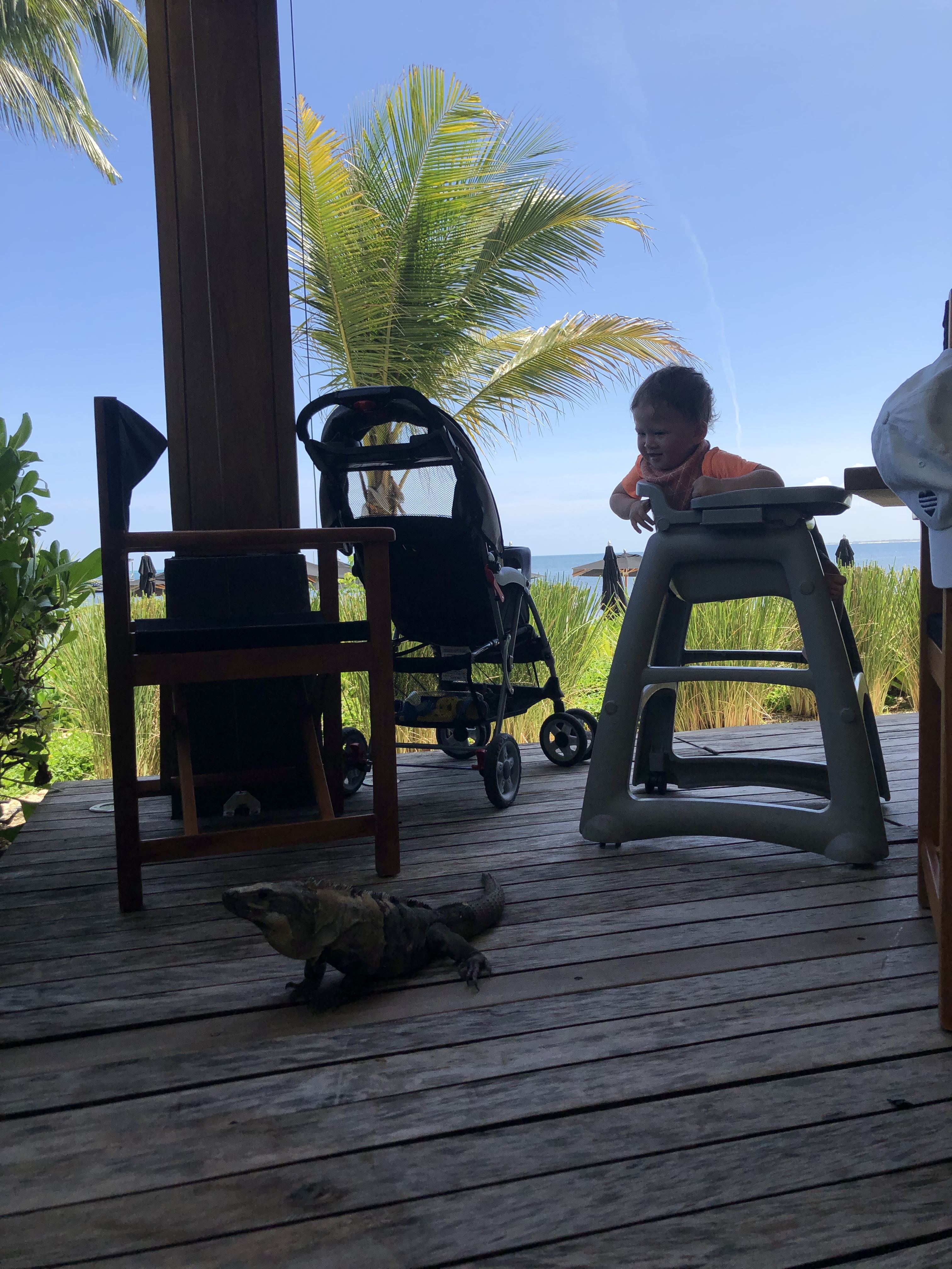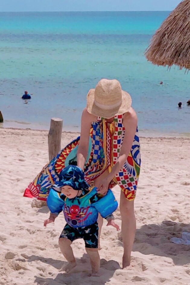 We ventured out only a few times to the public beach, as the resort does not have the top wavy beach that we love (but the quiet clean resort beach should be good for babies or anyone who just wants to chill though). There were quite a few people on the public beach (the thatched cabanas were first come first served) and everyone seemed to be quite friendly towards Nissik. I noticed that there were quite some seaweeds in the water at Playa Delfines (the water was beautiful nevertheless) and it was quite unpleasant to be entangled with these seaweeds as one swim – which also made me appreciate the hard work of the staff at our resort – I barely saw any on the beach as they were constantly being cleaned out of the water.