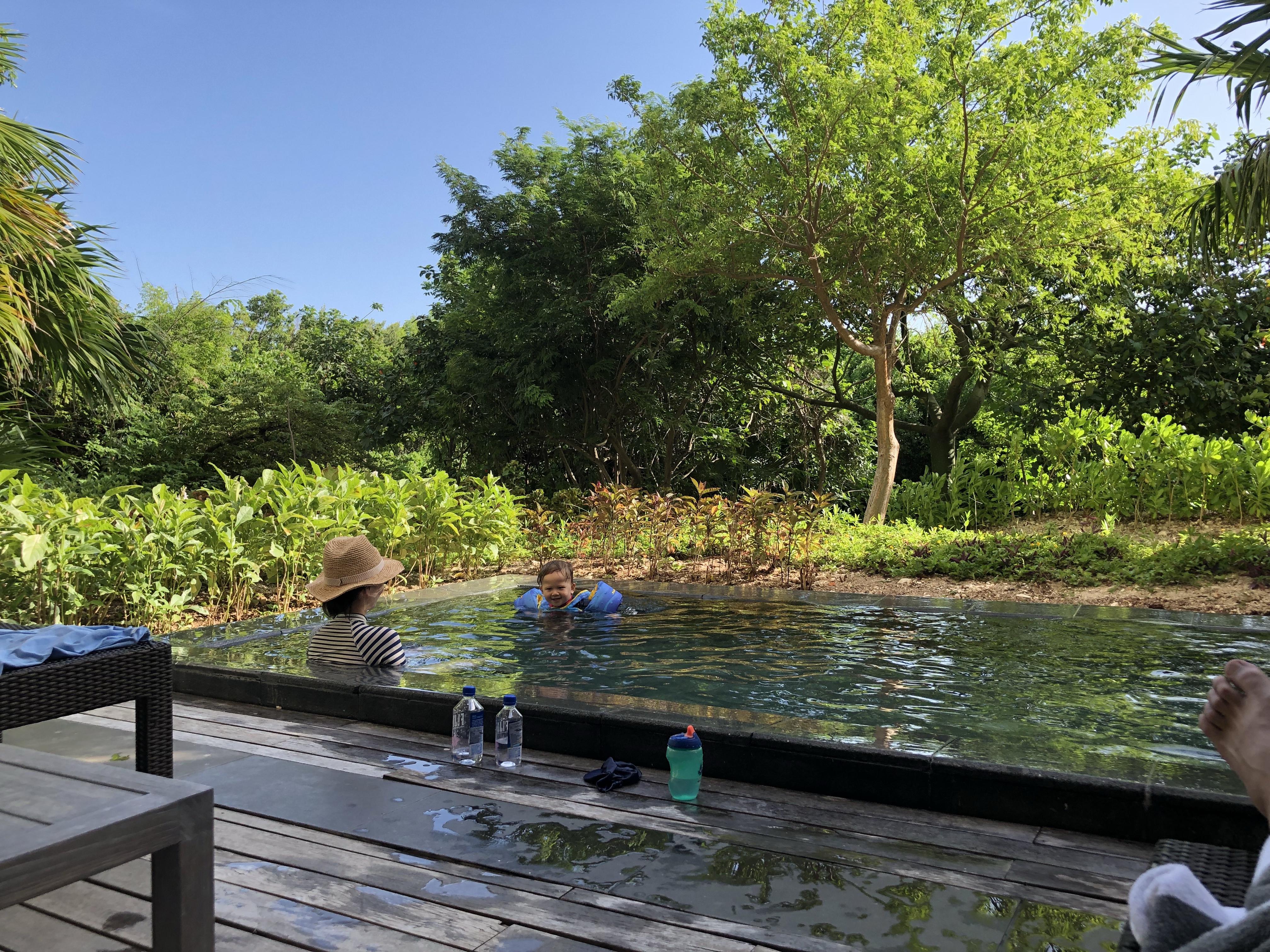 We had a size-able spa pool in our suite and it was the perfect size for Nissik (at 21months) to explore water and learn to enjoy swimming/water-walking with his swim vest life jacket while feeling secured. He did not seem to grapple the idea of riding the waves just yet.