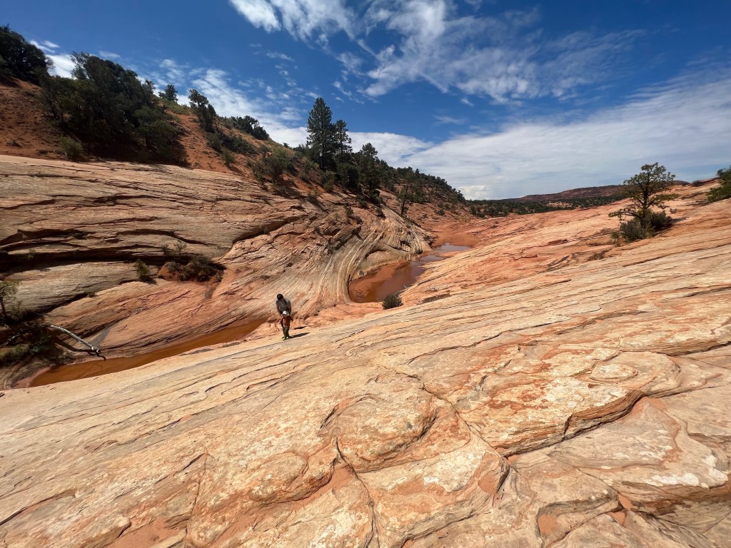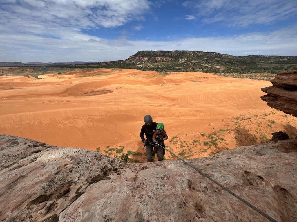 The other highlight of the trip is that Nissik tried rappelling for the first time. Most of the shops I spoke with would not take a toddler of that age, although I tried to reassure them with our outdoor experience. Through some research online, including a few helpful reviews and blogposts, I found All Ways Adventure (AWA) and spoke with its owner Nathan who quickly impressed me with a more sensible approach to including kids into the family outdoor adventures based on the kids’ own aptitude and interest. Our guide Brandon from AWA turned out to be the perfect private tour guide for our trip. He explained to us in great detail the safety measures for adults and kids for the activities we were undertaking and worked patiently with Nissik. He slowly guided him down the cliff at the Coral Pink Sand Dunes and Nissik kept asking for more. We also came across a gentleman who allowed us to hop on to his sandrail for a ride across the dunes, and it was so much fun! Close to the sand dunes state park as a dinosaur footprint site, and the landscape there looked Martian to me. It was a wonderful experience thanks to AWA and I would definitely recommend it if you are looking to include your toddler into your more active itinerary for a family road trip near Zion.