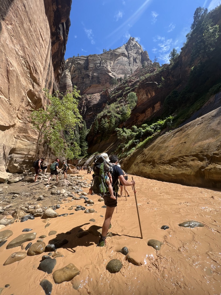 We attempted one major hike with Nissik – the Narrows. It is one of the most popular hikes in the park and can get really crowded, especially for the first mile or two. Although it is 16 miles in total, most of the people (us included) did not finish the entire hike and just turned back whenever one felt like it. It was definitely a good investment to rent a “big Narrows” gear package from one of the shops in Springdale. We got ours from Zion Guru that included water compatible hiking boots, neoprene socks and walking pole. We also rented a baby carrier for Nissik. It was such a great idea! We came across hikers that painfully making their way back shivering non-stop, as the water could get quite cold (despite the heat in the air) and our feet could put up a protest very soon without the neoprene socks and water compatible socks to retain heat. The water could get deep in certain parts of the hike and I wish I had water resistant clothing (or rather anything that dries fast). Nissik enjoyed the hike too, although we only allowed him came down from the baby carrier at the entrance when the current was mild and gentle (and mostly just mud). After the hike, we returned the rental gear to the shop and were grateful that the shop took care of the cleaning and made it really hassle-free for us. We also hiked a handful of other routes in the park and most of them were doable with a toddler, but the most special one was definitely the Narrows (and enjoyable in the summer time thanks to the shade and the water, if you have the right gear, that is).